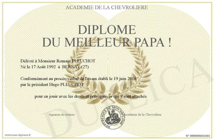 Envoyez par email votre Diplôme du meilleur papa ! personalisé