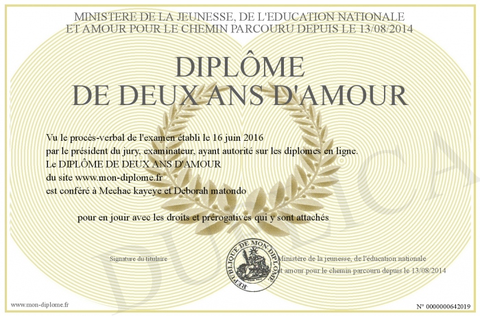 Envoyez par email votre DIPLÔME DE DEUX ANS D'AMOUR personalisé