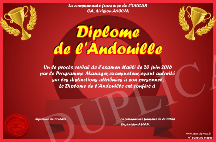 Envoyez par email votre Diplôme de l'Andouille personalisé