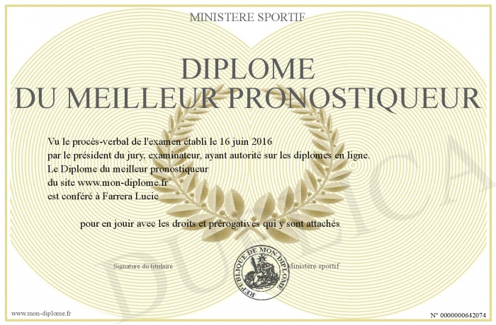 Envoyez par email votre Diplôme du meilleur pronostiqueur personalisé