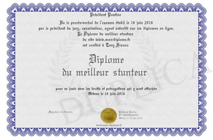 Envoyez par email votre Diplome du meilleur stunteur personalisé