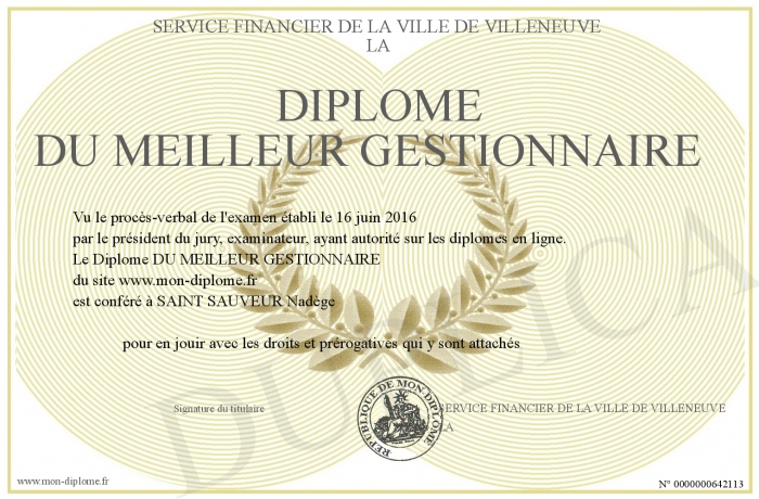 Envoyez par email votre Diplôme DU MEILLEUR GESTIONNAIRE personalisé