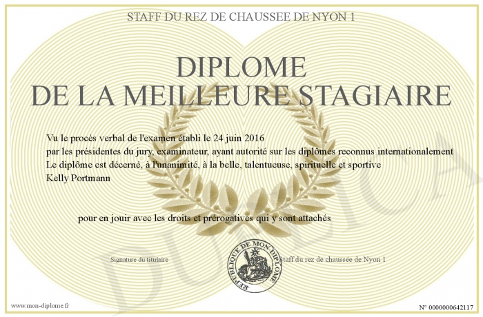Envoyez par email votre Diplôme de la meilleure Stagiaire personalisé