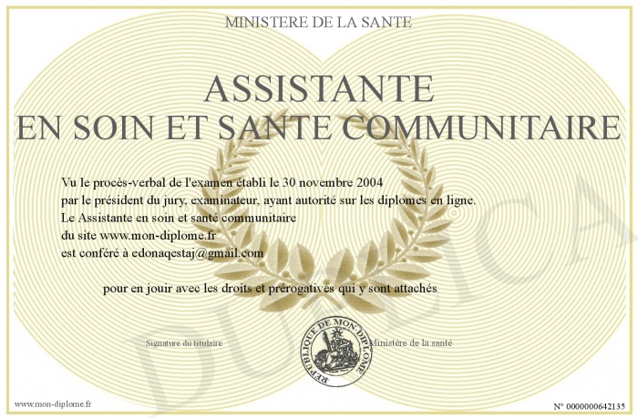 Envoyez par email votre Assistante en soin et santé communitaire personalisé
