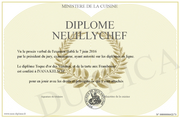 Envoyez par email votre Diplôme NEUILLYCHEF personalisé
