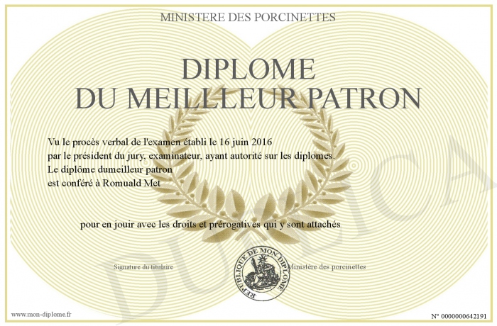 Envoyez par email votre Diplôme du meillleur patron personalisé
