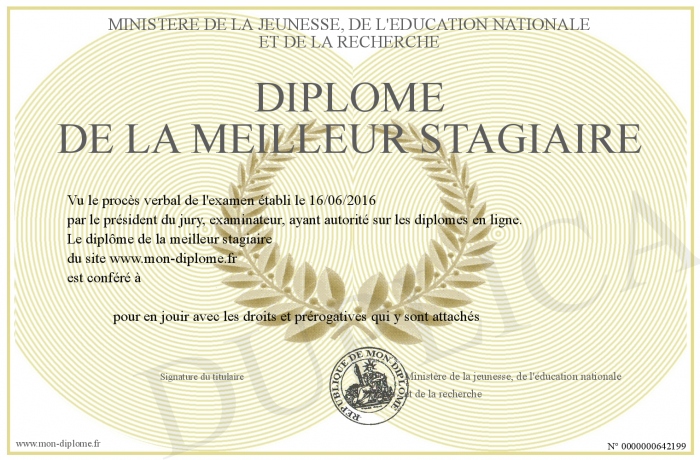 Envoyez par email votre Diplôme de la meilleur stagiaire personalisé