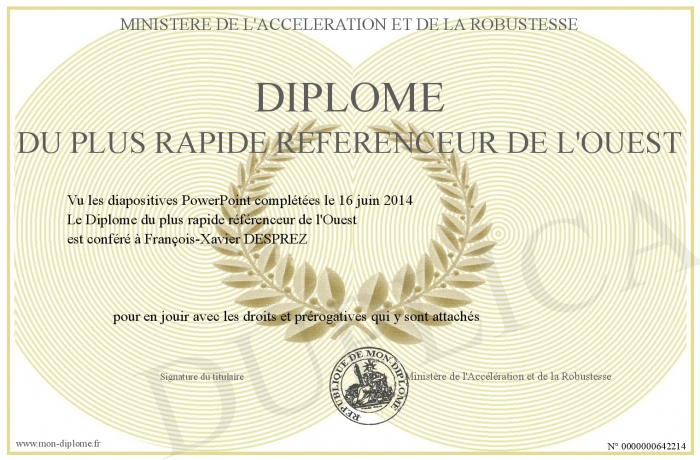 Envoyez par email votre Diplôme du plus rapide référenceur de l'Ouest personalisé