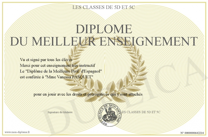 Envoyez par email votre DIPLOME DU MEILLEUR ENSEIGNEMENT personalisé