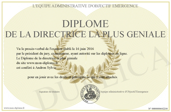 Envoyez par email votre Diplôme de la directrice la plus géniale personalisé