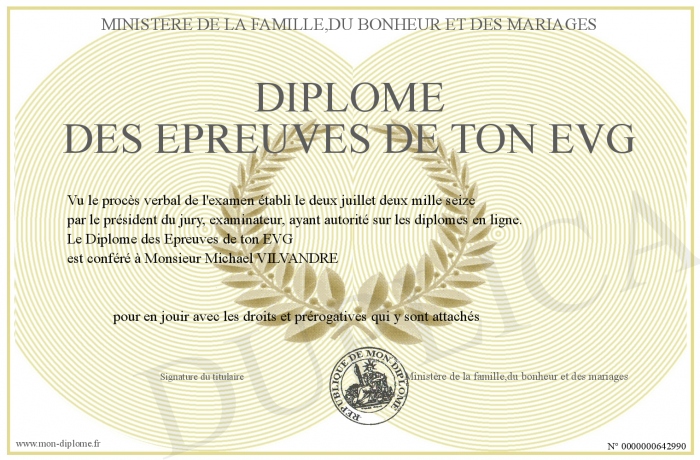 Envoyez par email votre Diplôme des Epreuves de ton EVG personalisé