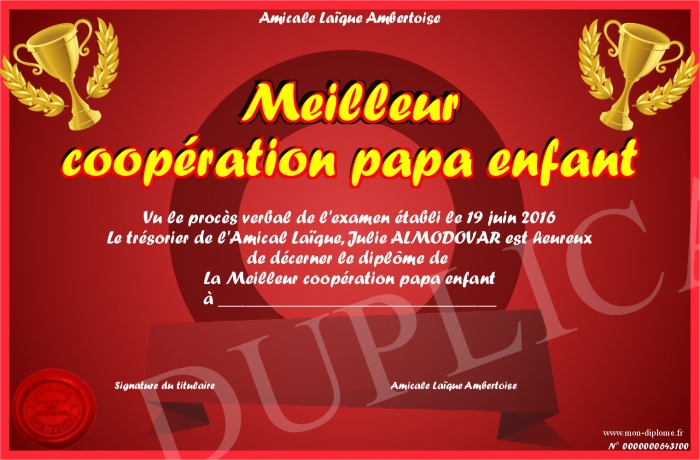 Envoyez par email votre Meilleur coopération papa enfant personalisé