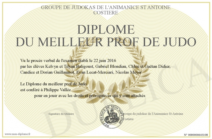 Envoyez par email votre Diplôme du meilleur prof de Judo personalisé