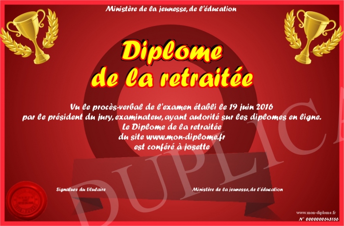 Envoyez par email votre Diplôme de la retraitée personalisé