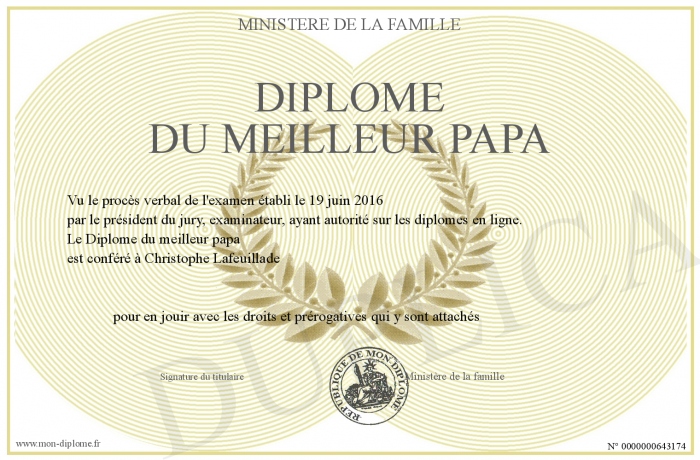Envoyez par email votre Diplôme du meilleur papa personalisé