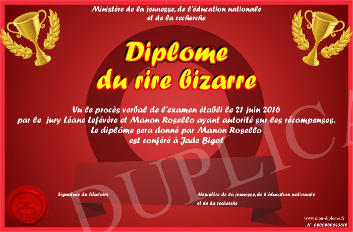 Envoyez par email votre Diplôme du rire bizarre personalisé