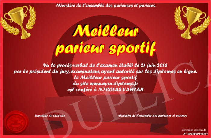 Envoyez par email votre Meilleur parieur sportif personalisé