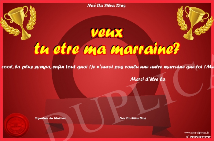 Envoyez par email votre veux tu etre ma marraine? personalisé