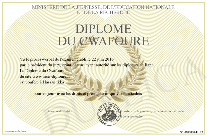 • Diplôme du Cwafoure