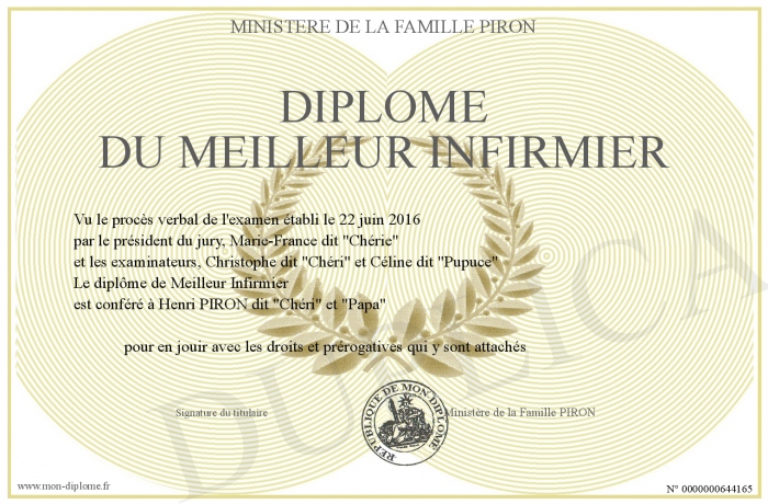 Envoyez par email votre Diplôme du meilleur infirmier personalisé