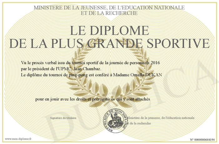 Envoyez par email votre le Diplôme de la plus grande sportive personalisé