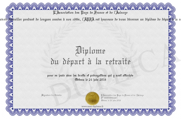 Envoyez par email votre Diplôme du départ à la retraite personalisé