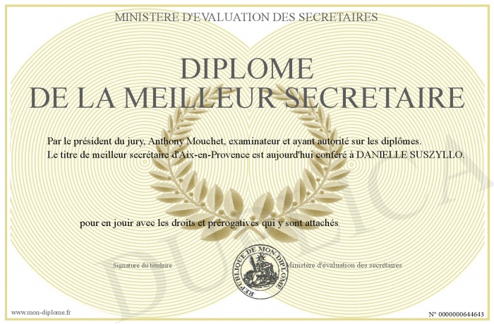 Envoyez par email votre Diplôme de la meilleur secrétaire personalisé