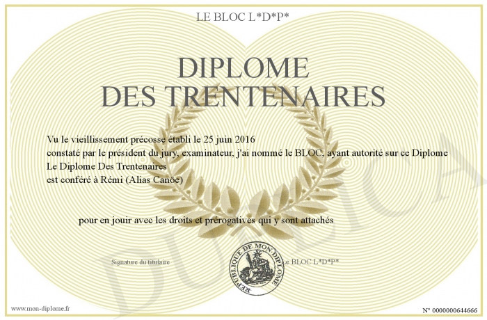 Envoyez par email votre Diplome Des Trentenaires personalisé