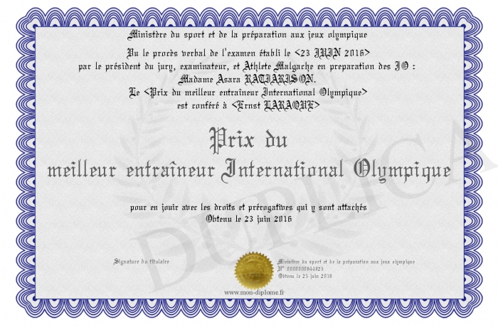 Envoyez par email votre Prix du meilleur entraîneur International Olympique personalisé