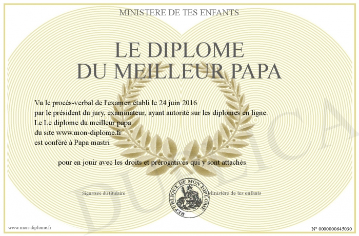 Envoyez par email votre Le diplôme du meilleur papa personalisé
