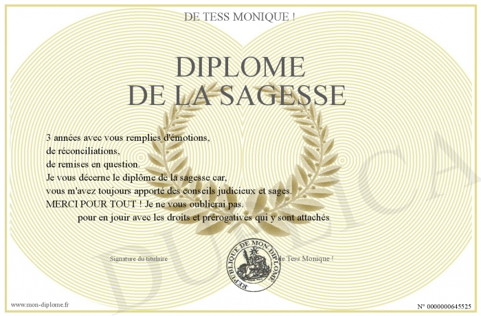 Envoyez par email votre Diplôme de la sagesse personalisé