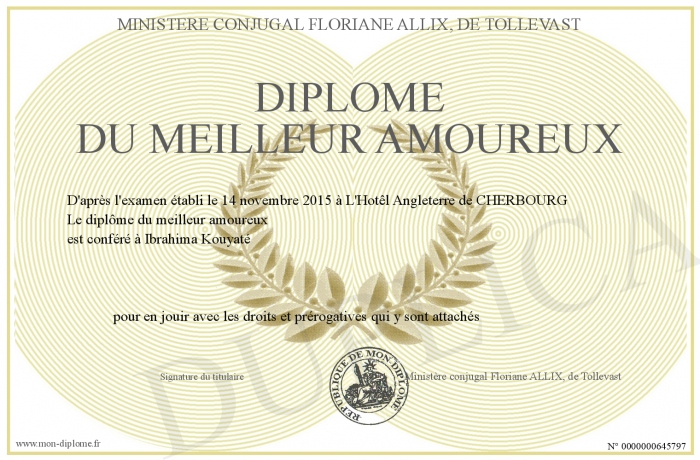 Envoyez par email votre Diplôme du meilleur amoureux personalisé