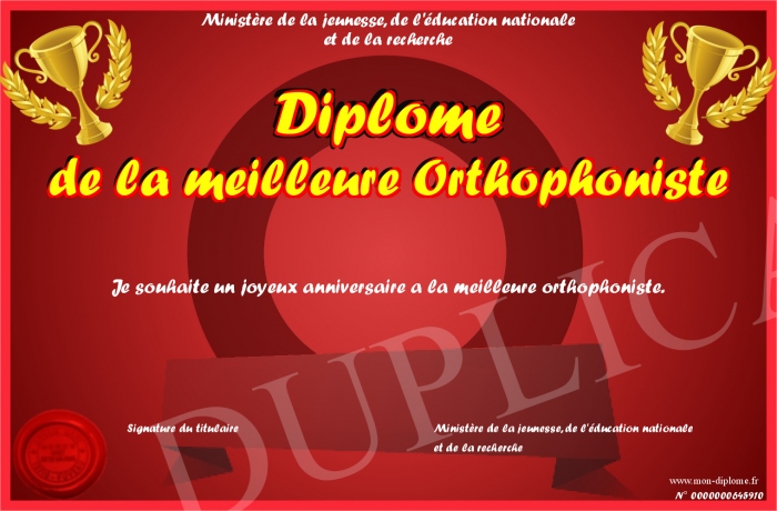 Envoyez par email votre Diplôme de la meilleure Orthophoniste personalisé