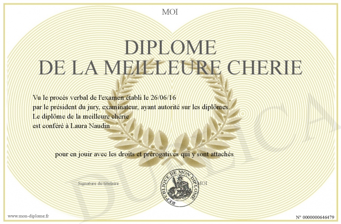 Envoyez par email votre Diplôme de la meilleure chérie personalisé