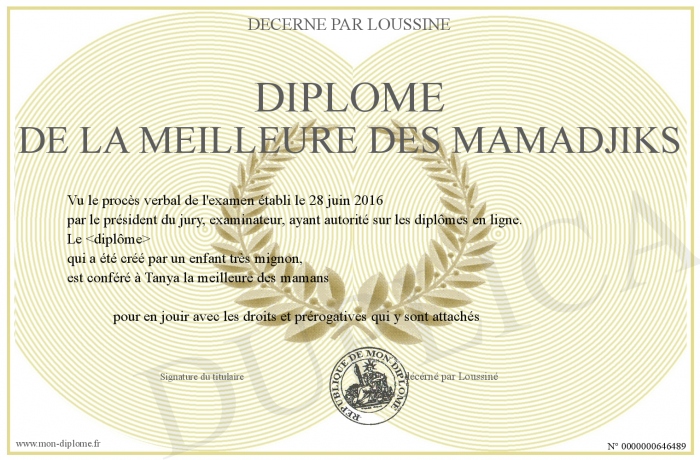 Envoyez par email votre diplôme de la meilleure des Mamadjiks personalisé