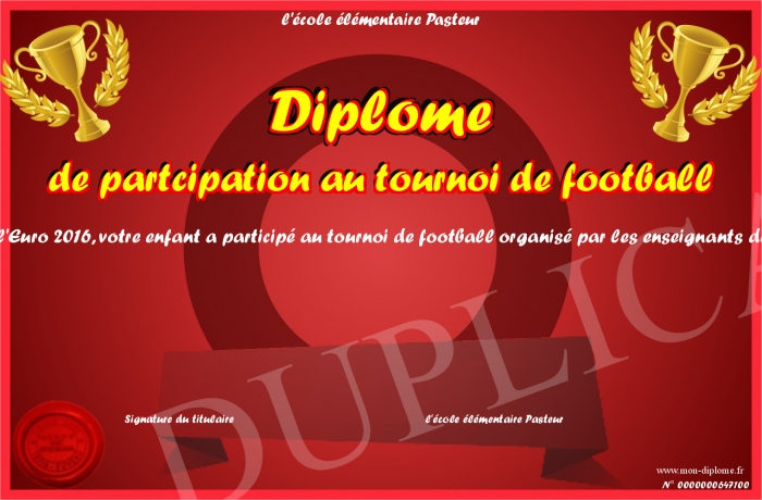 Envoyez par email votre Diplôme de partcipation au tournoi de football personalisé