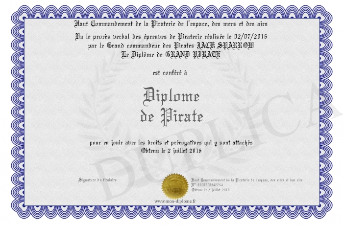 envoyé par le Haut Commandement de la Piraterie de l'espace, des mers et des airs !