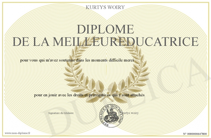 Envoyez par email votre Diplôme de la meilleureducatrice personalisé