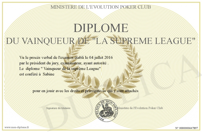 Envoyez par email votre Diplôme du vainqueur de -la supreme League- personalisé