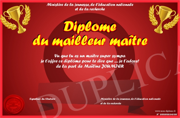 Envoyez par email votre Diplôme du mailleur maître personalisé