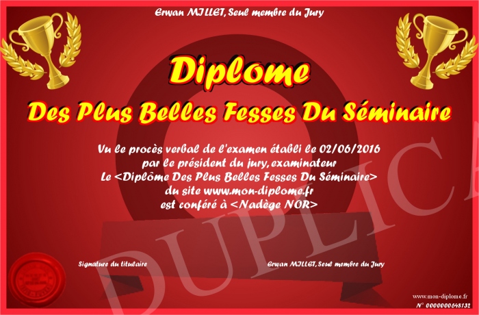 Envoyez par email votre Diplôme Des Plus Belles Fesses Du Séminaire personalisé