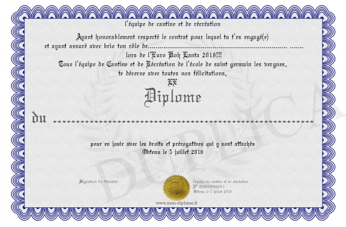 Envoyez par email votre Diplôme du ......................................................... personalisé