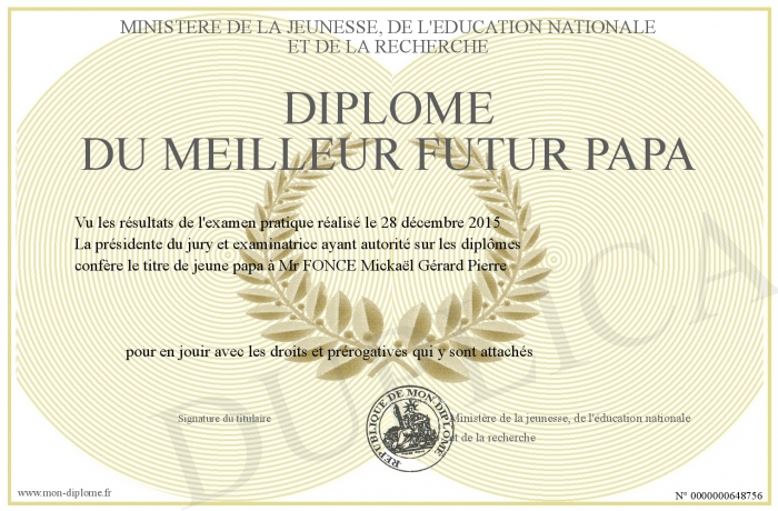 Envoyez par email votre Diplôme du meilleur futur papa personalisé