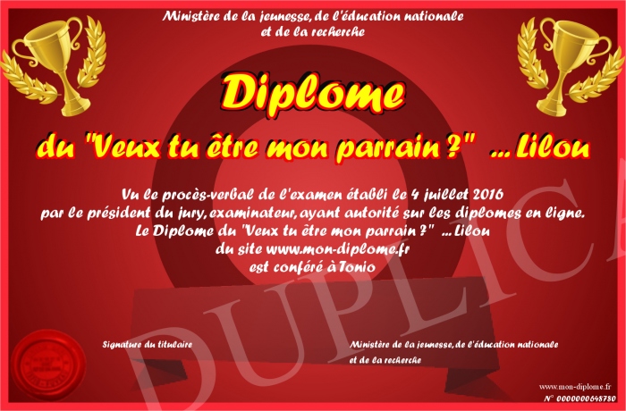 Envoyez par email votre Diplôme du -Veux tu être mon parrain ?- ... Lilou personalisé