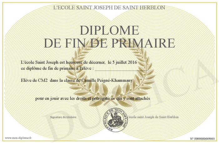 Envoyez par email votre diplôme de fin de primaire personalisé