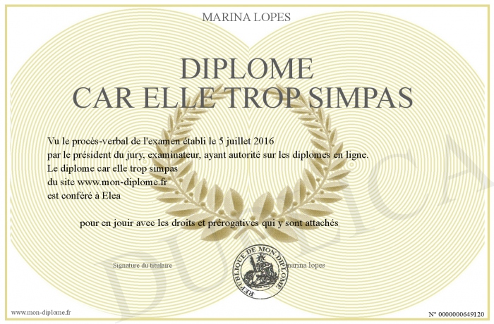 Envoyez par email votre diplome car elle trop simpas personalisé