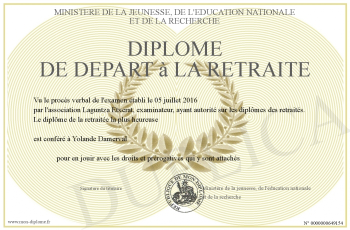 Envoyez par email votre Diplôme de départ à la retraite personalisé