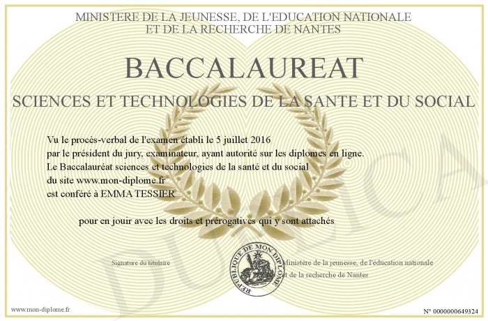 Envoyez par email votre Baccalauréat sciences et technologies de la santé et du social personalisé