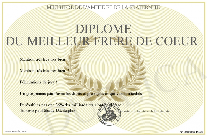 Envoyez par email votre Diplôme du meilleur frère de coeur personalisé