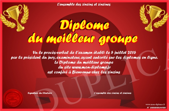 Envoyez par email votre Diplôme du meilleur groupe personalisé